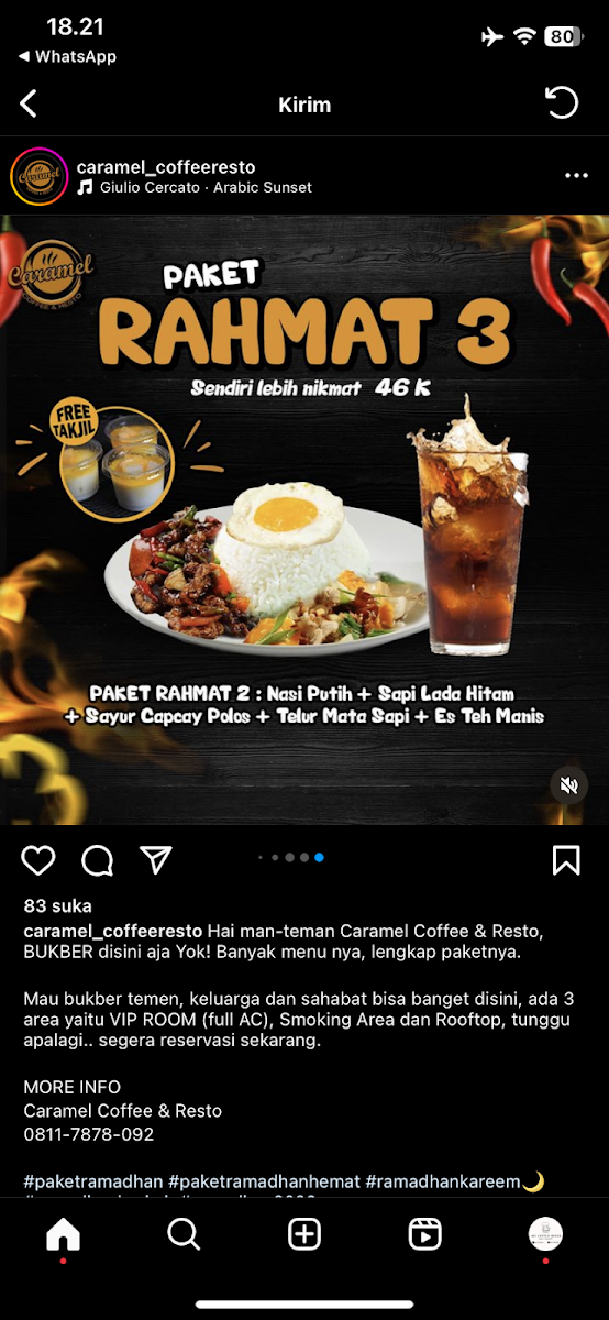 Located in the heart of Palembang, Caramel Coffee & Resto offers a vibrant selection of beverages and dishes that perfectly balance flavor and comfort. Their coffee lineup shines with choices like the rich Coffee Latte, the indulgent Caramel Attack, and the refreshing Ice Cube Matcha. For those seeking a sweeter touch, the Tiramisu Blended and Ice Chocolate deliver satisfying decadence without being overwhelming.